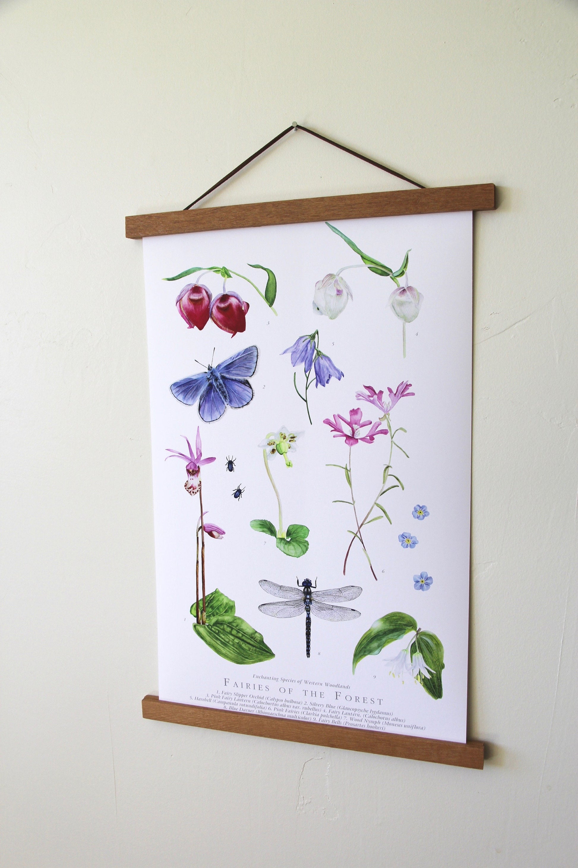 Botanical Print- Fairies of the Forest- Botanical Poster, Flower Poster, Native Wildflowers, Botanical Art Print, Native Plant Art, Children's Room Print, Butterflies Flowers and Fairies, Girls Room Print, Fairy Print