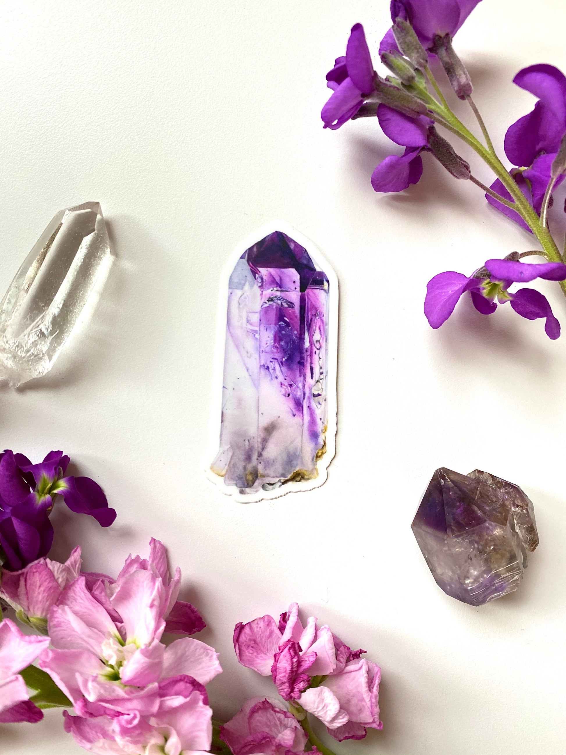 Crystal Sticker- Brandberg Goboboseb Amethyst Crystal Sticker, Geology Sticker, Mineral Art Sticker, Watercolor Scientific Painting