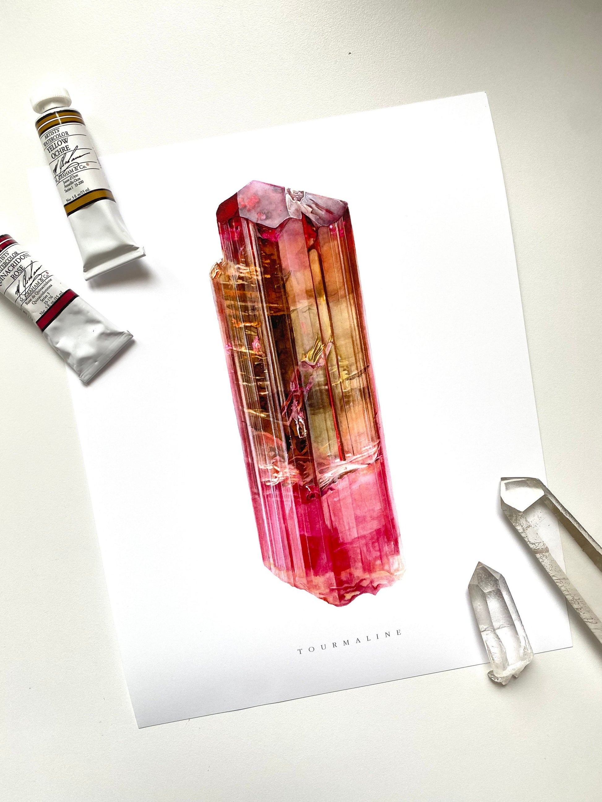 This is an archival, 8"x10" giclee print of my original watercolor painting of a natural particolored tourmaline specimen from the Himalaya Mine, Mesa Grande District, San Diego, California.