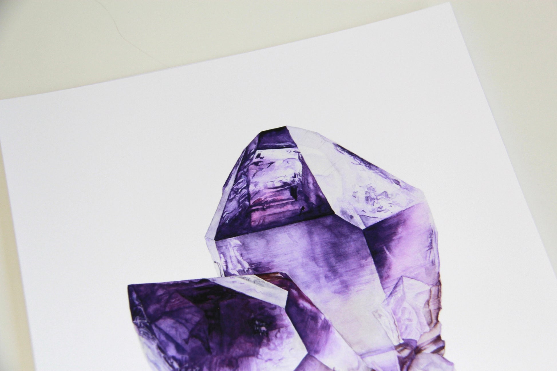 This is an archival giclee print of my original watercolor painting of a Amethyst crystal. Originally painted with traditional watercolor materials and techniques, this print excellently reproduces the watercolor magic with its rich tones and quality. It is printed on an archival, acid-free natural paper made of plant cellulose and cotton using premium quality pigment inks. This print won't ever fade or age.