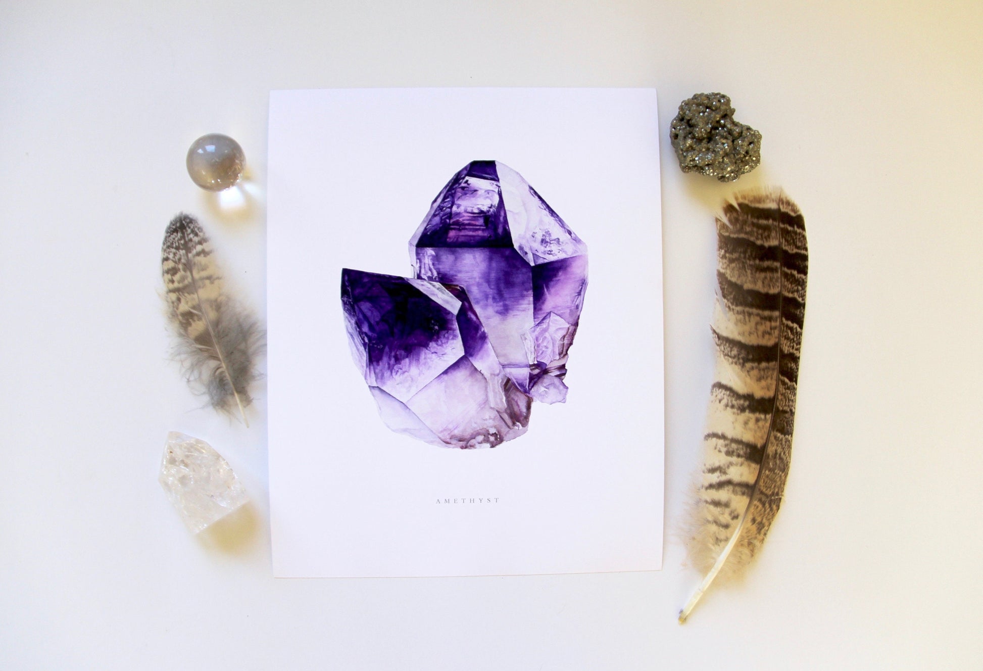 Watercolor Amethyst Giclee Print 8"x10" - Watercolor Crystal Art, Crystal Painting, Crystal print