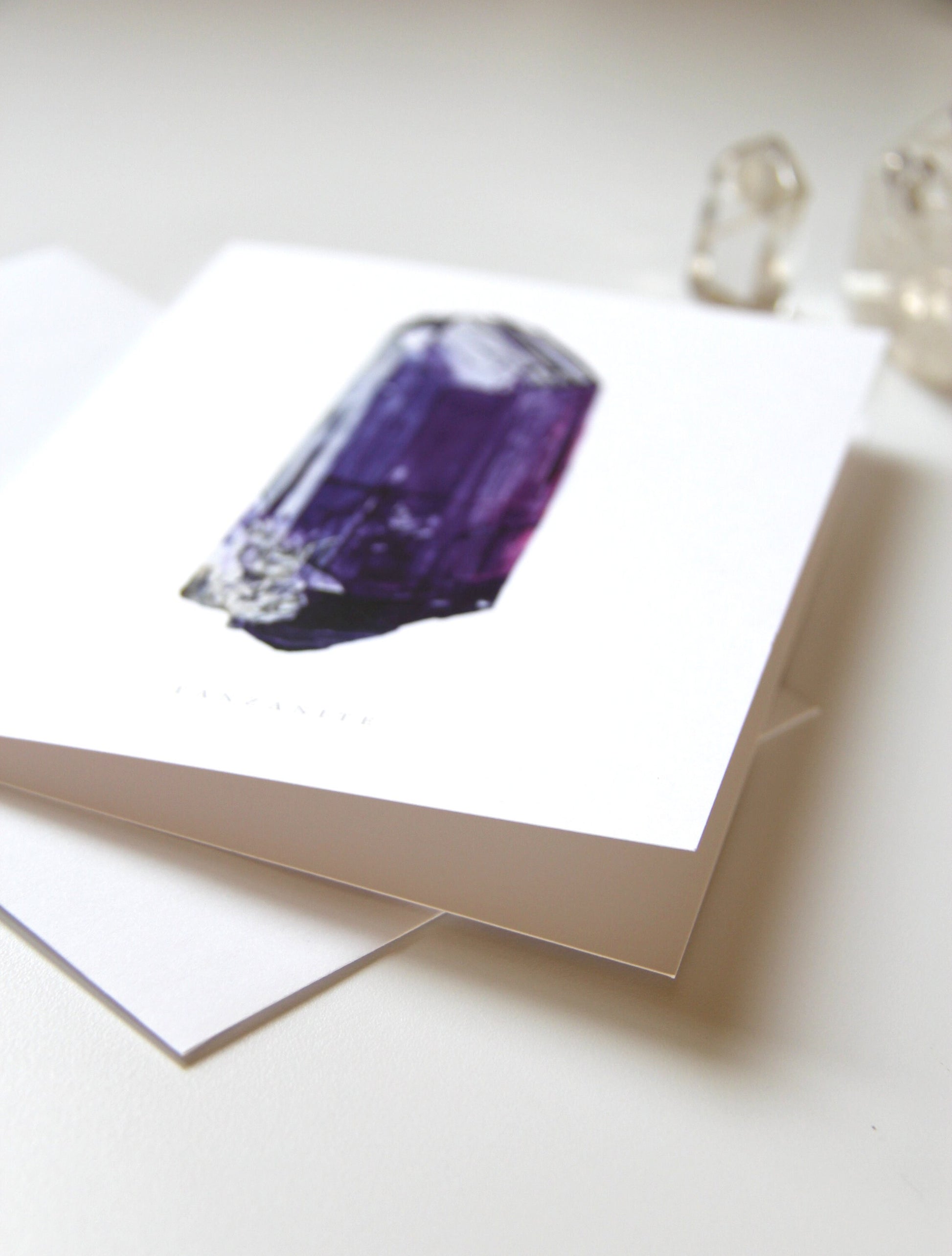 These 5"x7" cards are blank inside and made from a heavyweight, matte, recycled 140 lb. cardstock. The back features my logo and business name, each card comes with a solid white blank envelope, and cards come in a protective cello sleeve. They're a darling option for the mineral or crystal collector in your life, or perhaps a geology lover you know! Alternatively, because the quality is so good you could use these as a 5"x7" print. Frame it and voila!
