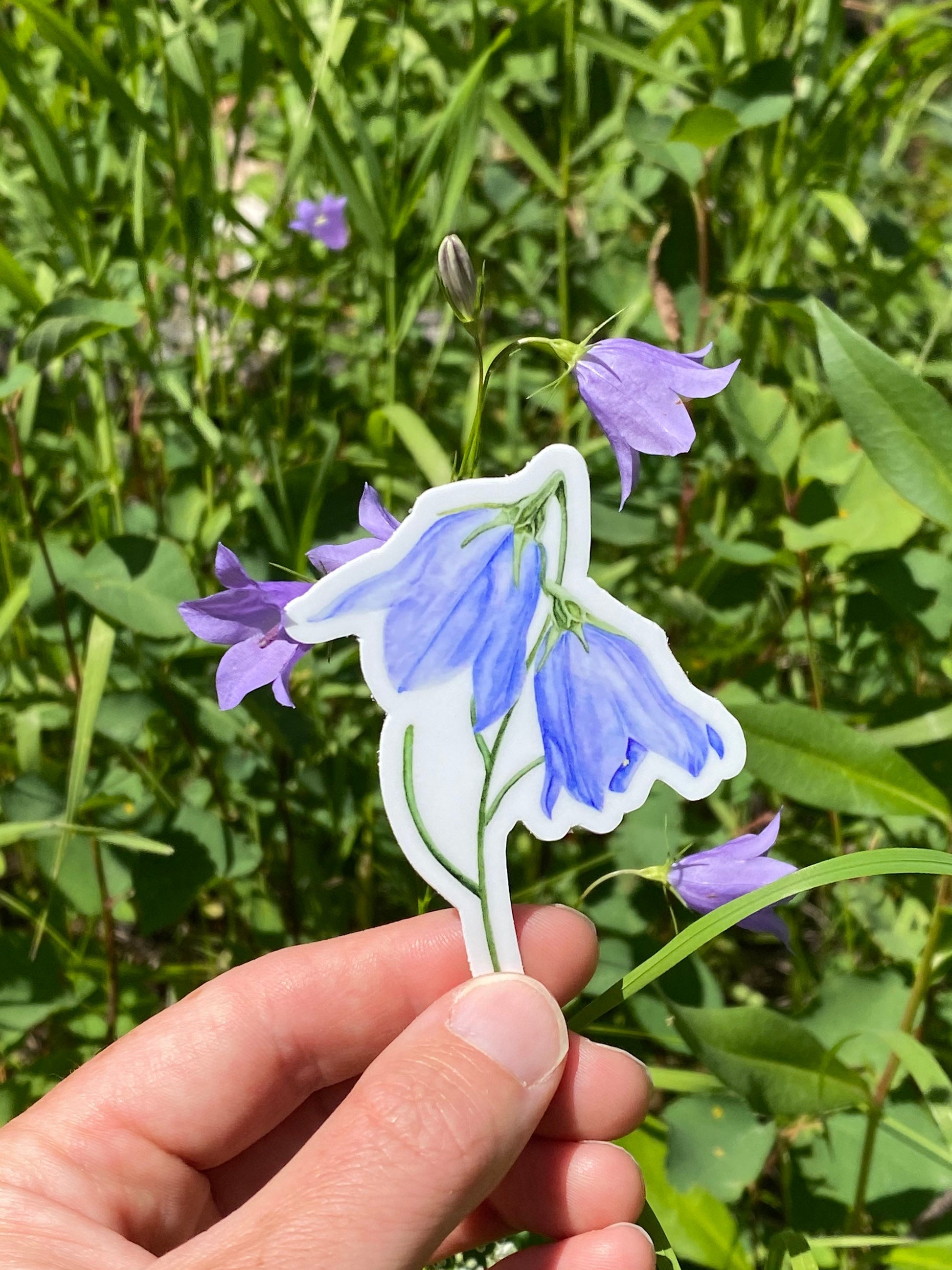 Enjoy the beauty of these ephemeral wildflowers year-round with these premium, durable vinyl stickers. Custom vinyl stickers feature impeccably reproduced artwork of my Harebell (Campanula rotundifolia) original watercolor painting. Stickers are 2.17"x3", printed on white vinyl, with a 1/8" border, are water-resistant and pretty scratch hardy.