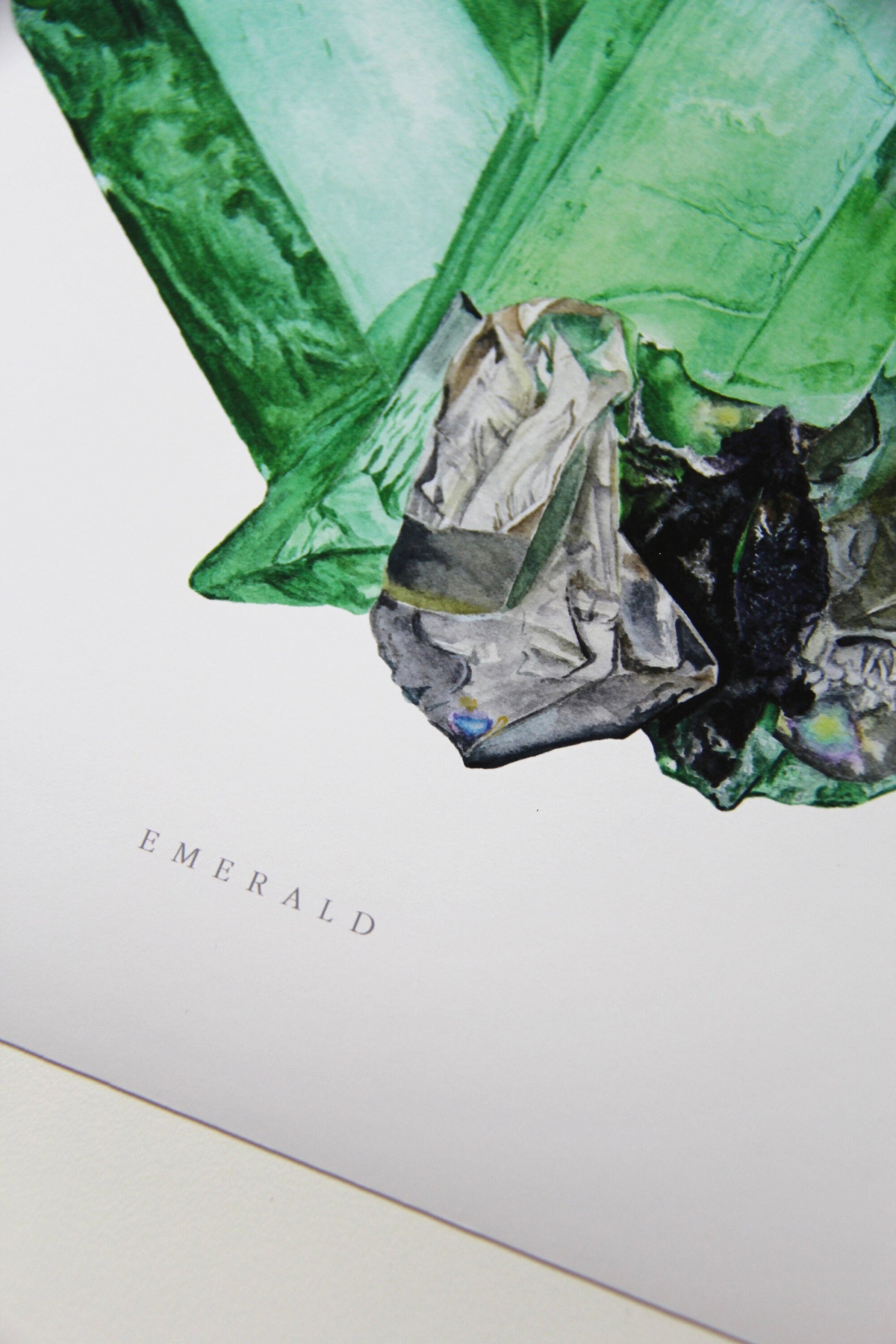 This is an archival giclee print of my original watercolor painting of an outstanding Emerald Beryl specimen. Originally painted with traditional watercolor materials and techniques, this print excellently reproduces the watercolor magic with its rich tones and quality. It is printed on an archival, acid-free natural paper made of plant cellulose and cotton using premium quality pigment inks. This print won't ever fade or age.