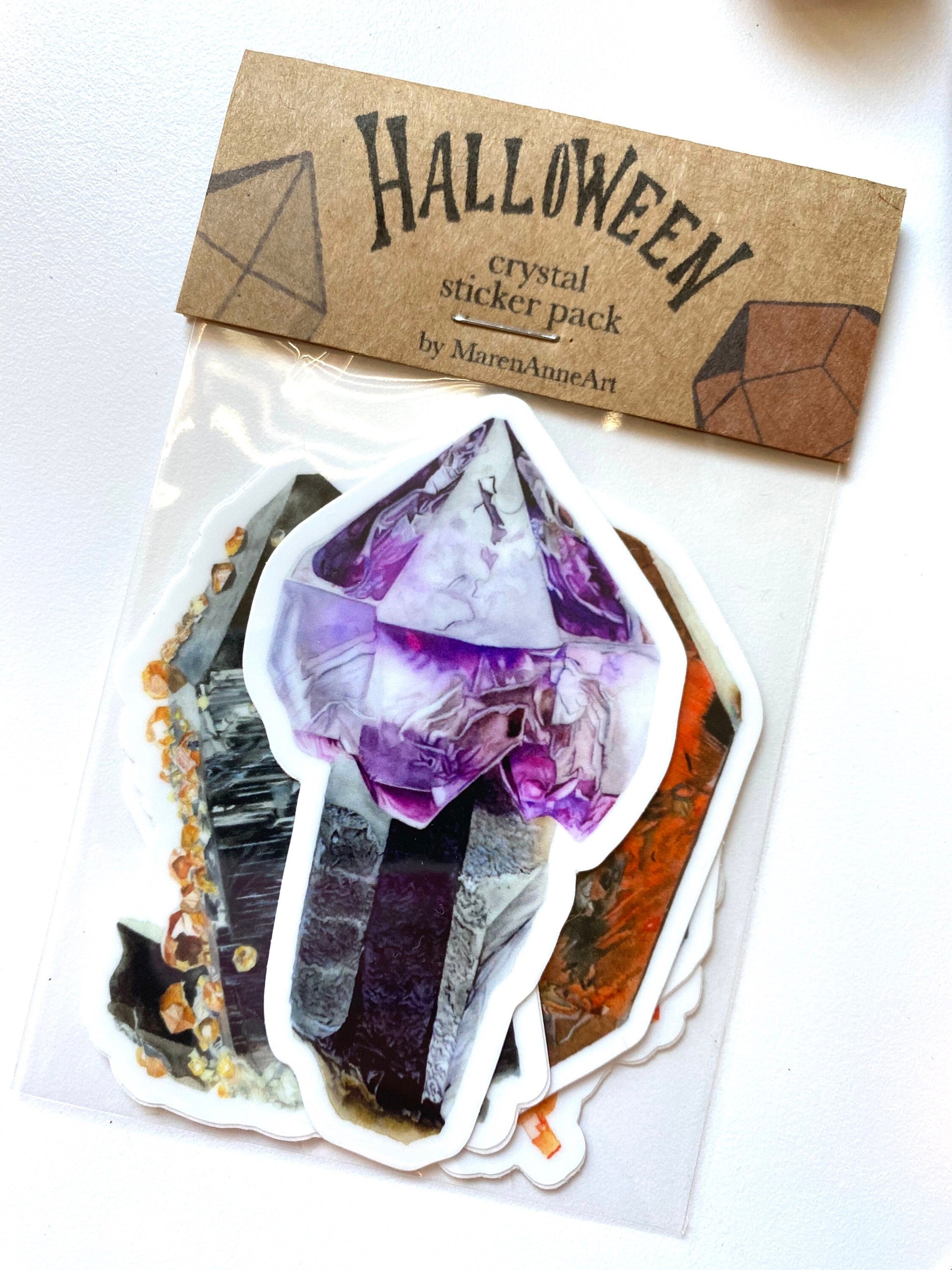 This festive & spooky sticker pack is a set of 5 watercolor crystals including: