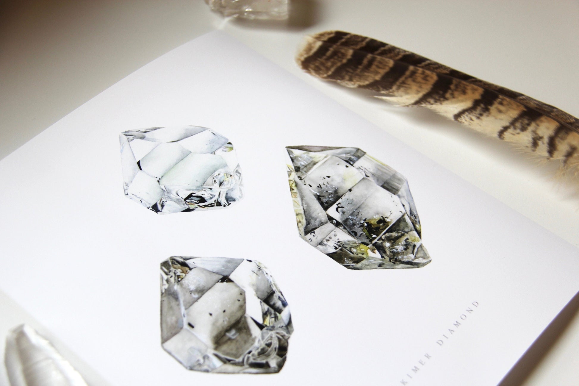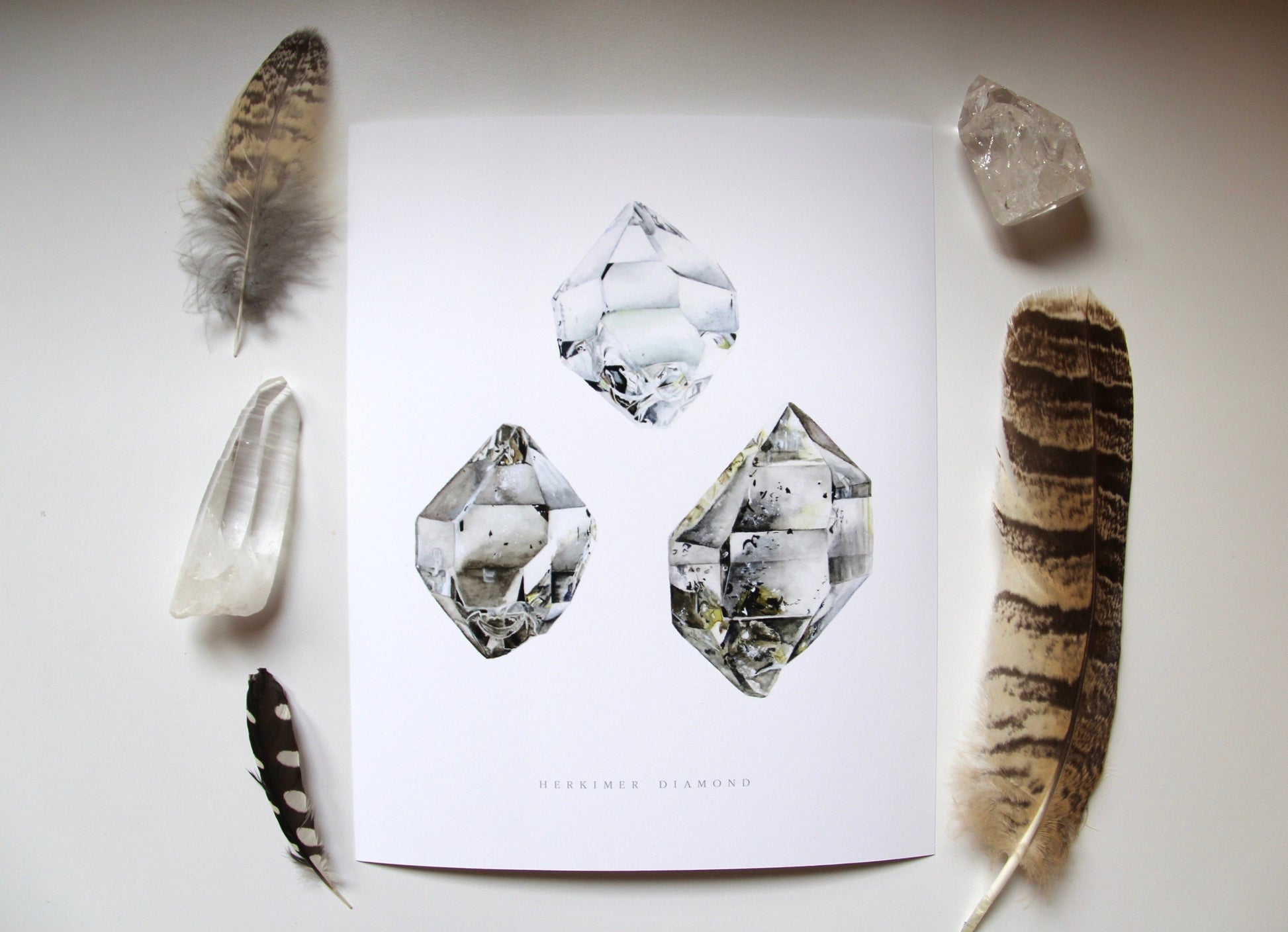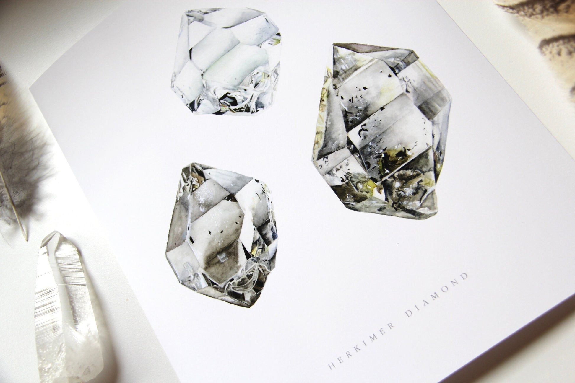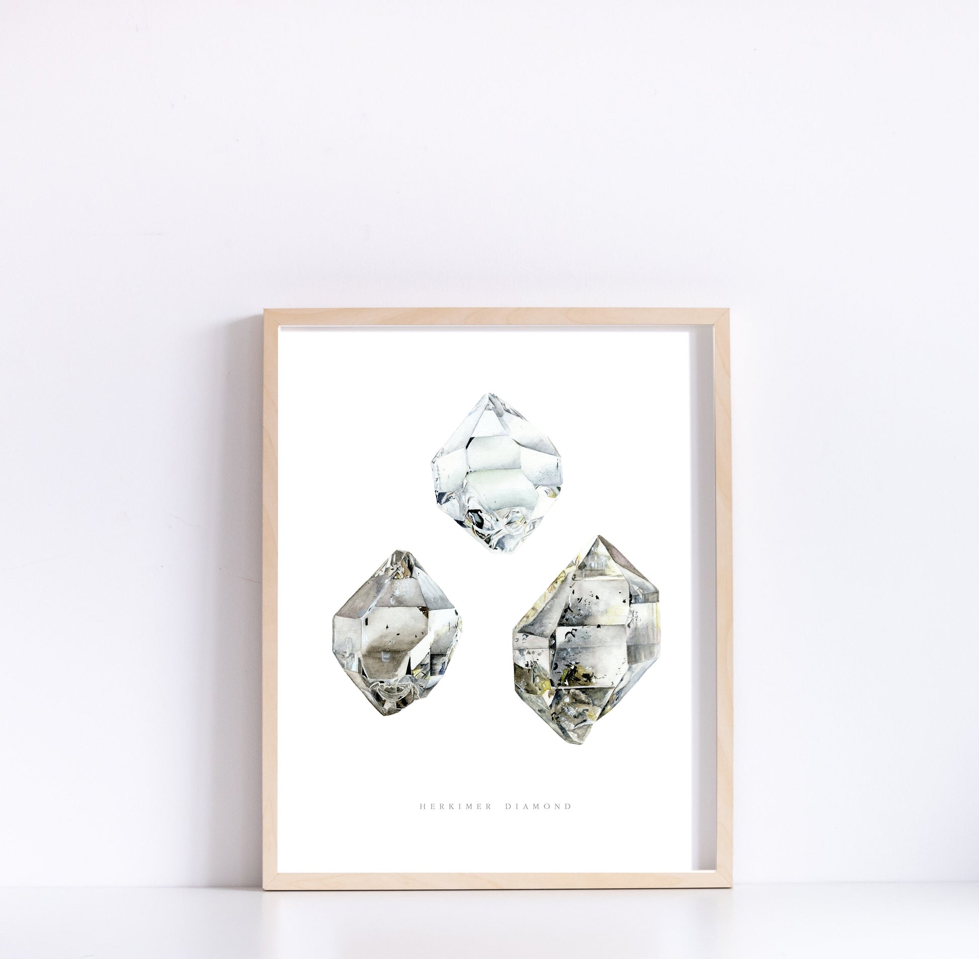 Herkimer Diamond Watercolor Print- Watercolor Crystal Wall Art, Crystal Print, Quartz Crystal Art, Gemstone Art Print