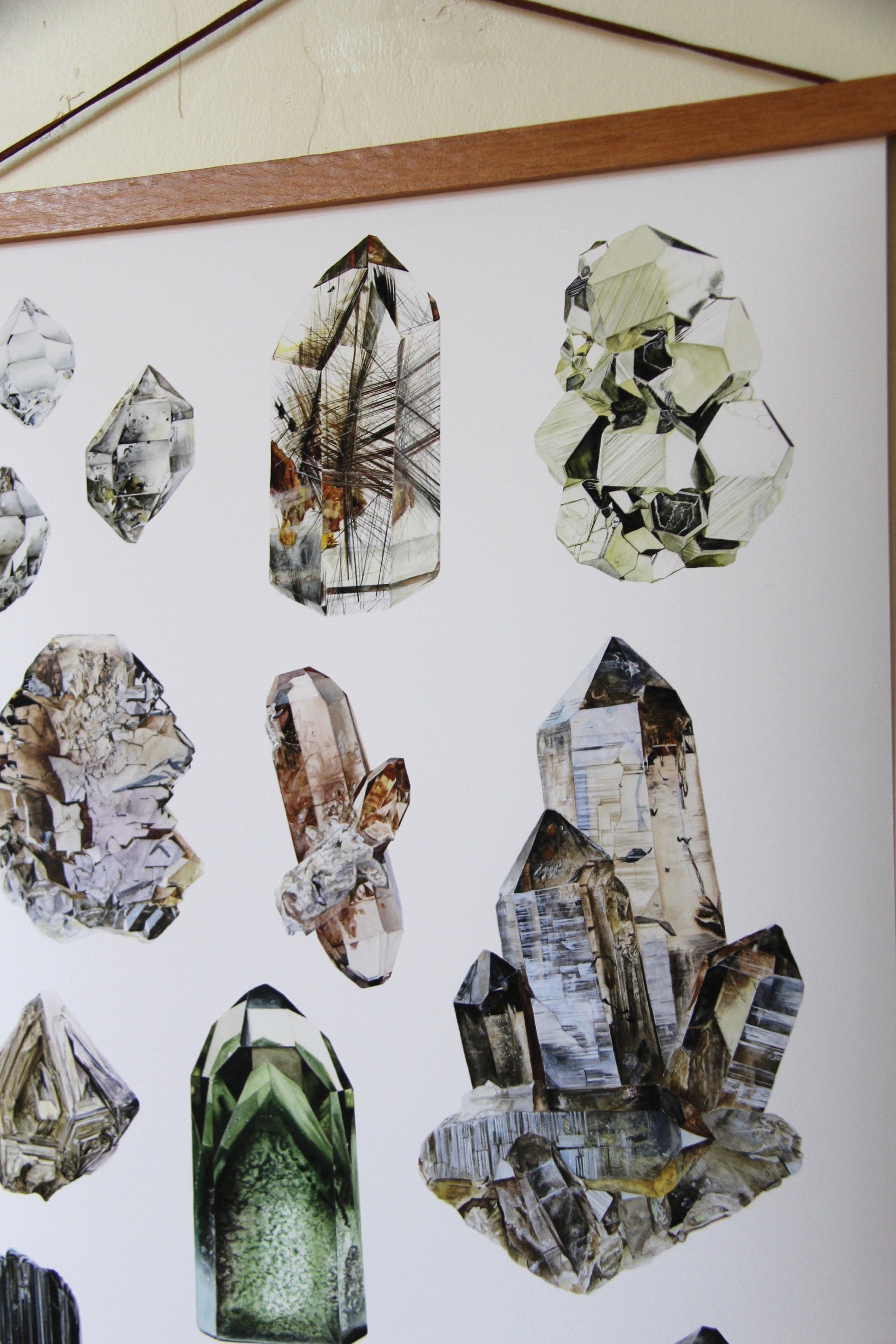 The second edition of my Mineralogy series. Mineralogy No. 2 features Herkimer Diamonds, Rutliated Quartz, Pyrite, Smoky Quartz var. Gwindel, Topaz, Smoky Quartz (cluster), Chlorite Phantom Quartz, Skeletal Smoky Quartz, Schorl (black tourmaline), Galena, and Smoky Quartz with Spessartine Garnets organized in a gradient from light to dark.