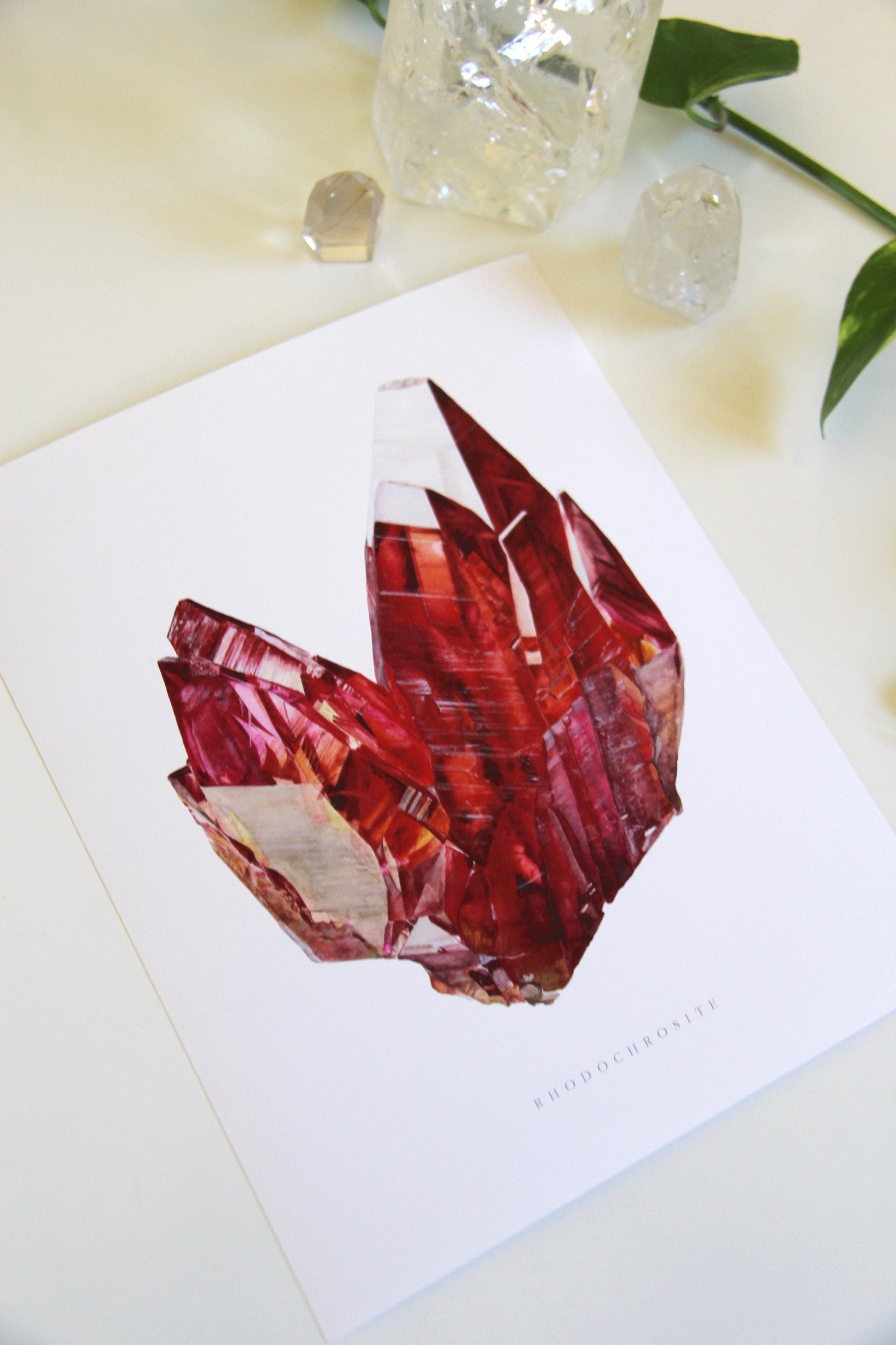 Watercolor Painting, Crystal Print, Mineral Print, Mineral Specimens, Gemstones, Rhodochrosite specimen, Crystal Painting, Boho Art, Boho Painting, Witchy Art, Healing Crystals, Metaphical Art, Geology Art, homeschool minerals