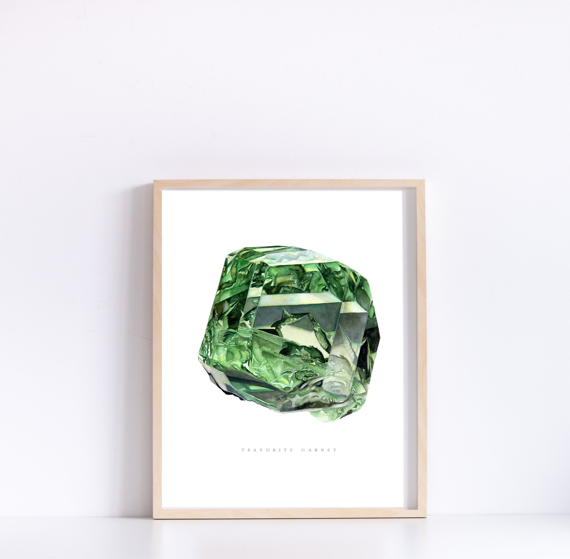 This is an archival giclee print of my original watercolor painting of a natural green Tsavorite garnet from Tanzania. Most people only think of the deep red garnets for January's birthstone, but this would make a nice gift for a January baby who likes different things (don't all Capricorns!?)