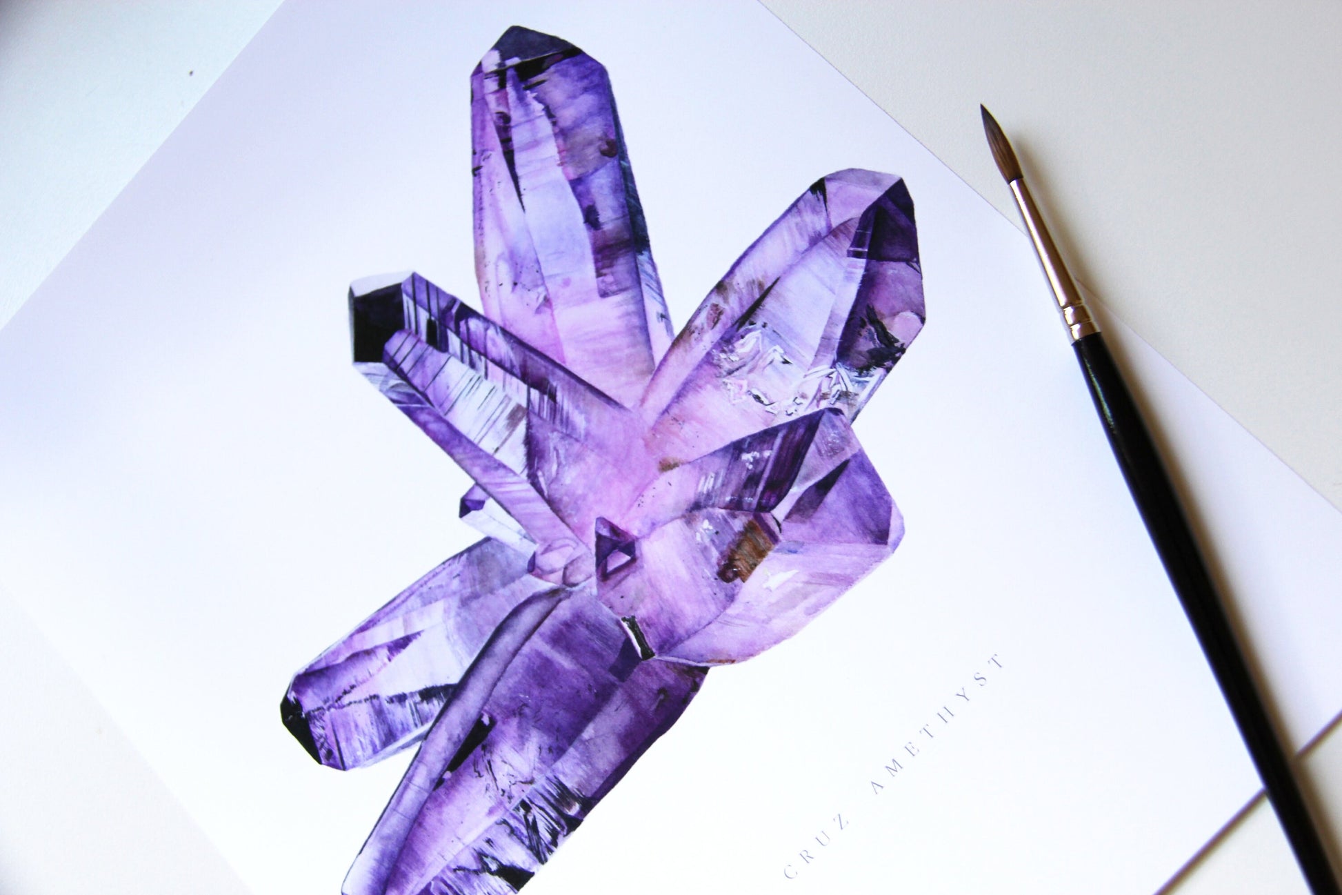 Vera Cruz Amethyst Watercolor Print- Amethyst Giclee Print- Watercolor Crystal Art, Mineral Art, Crystal Print