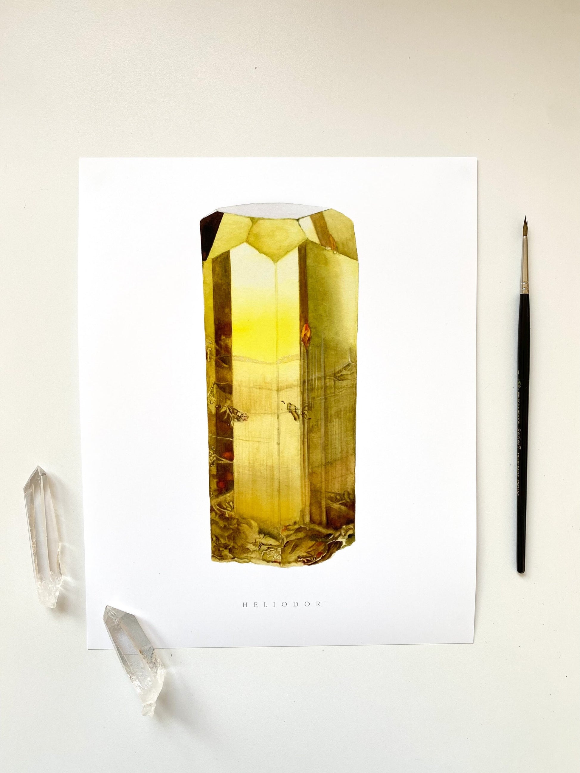 Watercolor Heliodor Art Print, Crystal Art, Giclée Print, Mineral Art, Crystal Painting