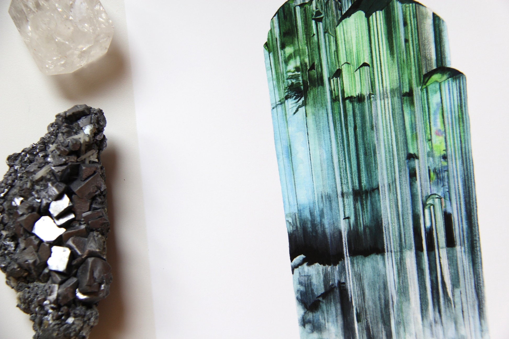 Watercolor Tourmaline Crystal Art Print- Crystal Art, Mineral Art, Watercolor Gemstone Art Print