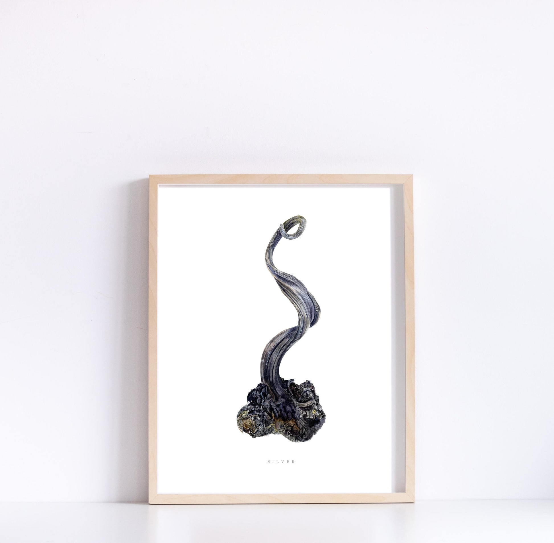 This is an archival giclee print of my original watercolor painting of a silver wire specimen mined from Germany.