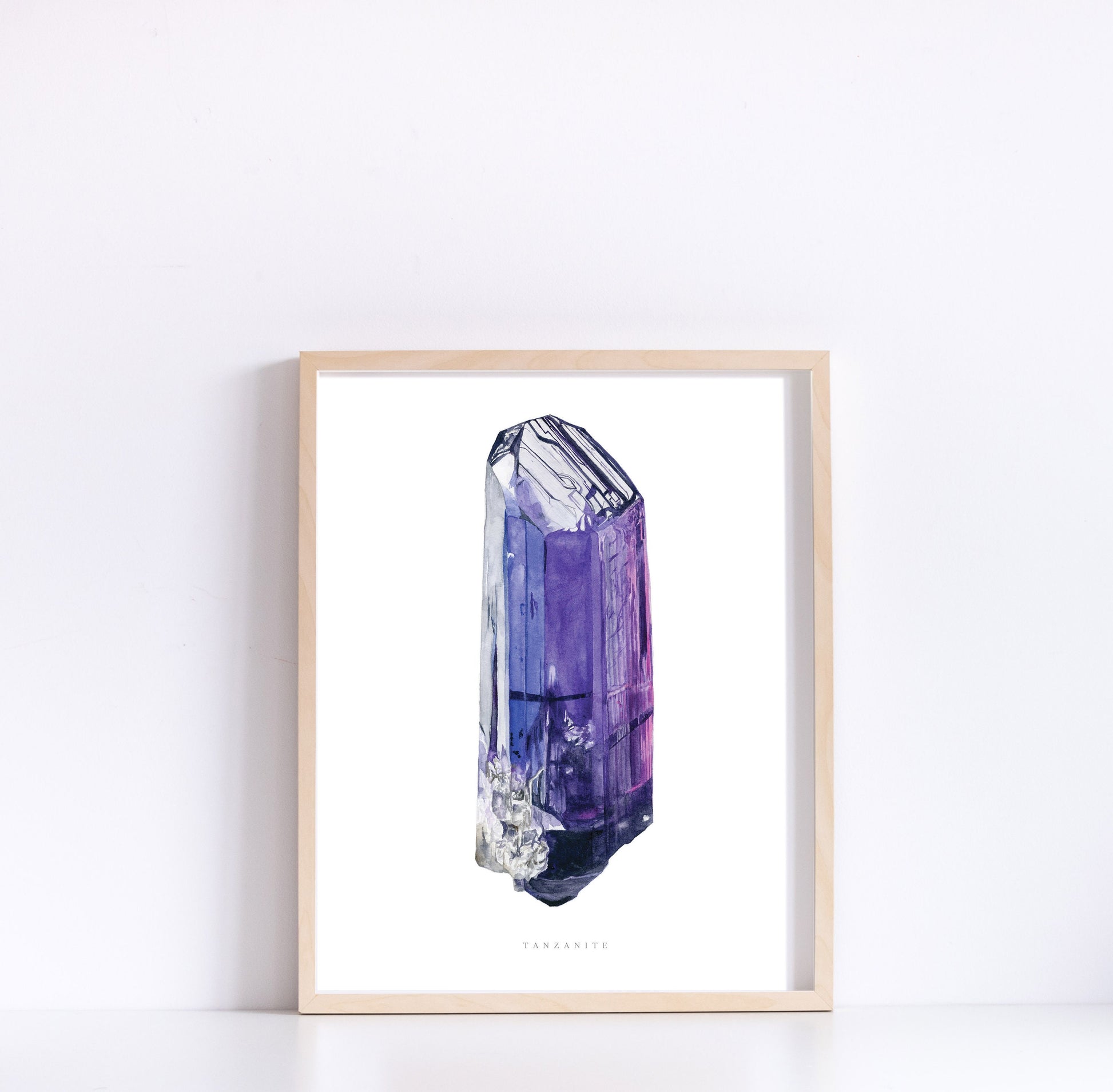 Watercolor Tanzanite Crystal Art Print- Crystal Art, Mineral Art Print